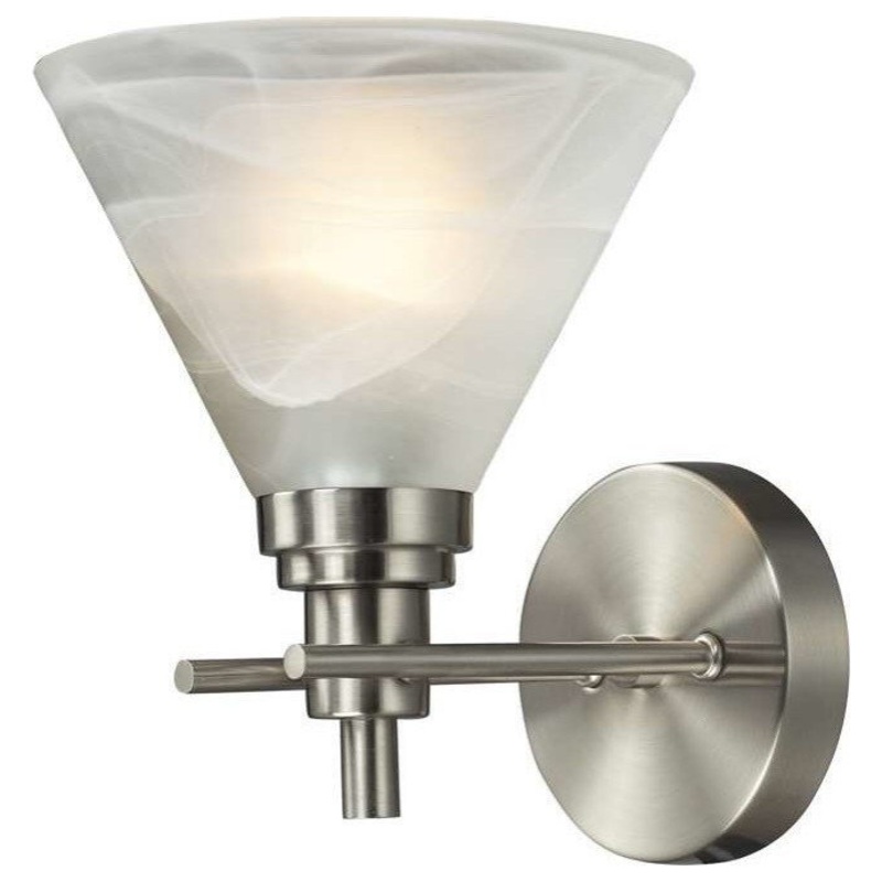 The Pemberton Collection features Brushed Nickel finish with White marbleized glass. -Number of Bulbs: 1 -Wattage: 100 -Bulb Type: Medium -Bulb Included: NoProduct ID179394976Manufactured ByELK Group InternationalSold ByHouzzSize/WeightW 7" / H 9" / 2 lb.C