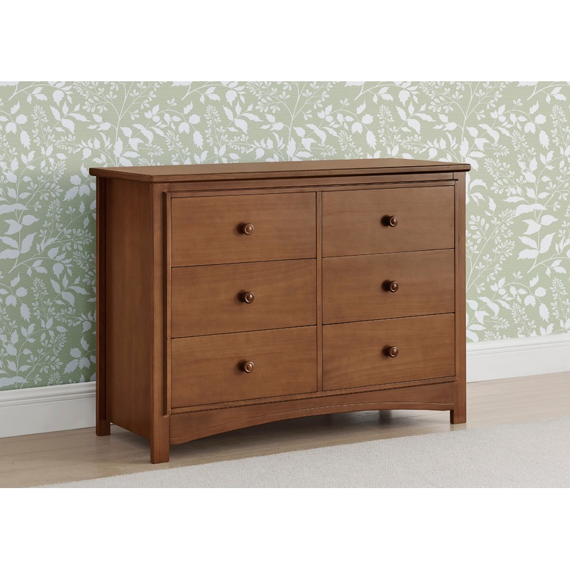 An array of timeless design details makes the Perry 6 Drawer Dresser by Delta Children a standout style. The round drawer pulls accent the six spacious drawers that are trimmed with picture frame molding. For your childs safety, this dresser is outfitted with an interlocking drawer system that limits the number of drawers that can be opened at one time. Plus, its GREENGUARD Gold Certified, which means its built to contribute to cleaner air for a healthy home. Available in Bianca White, Moonstruck Grey and Chestnut. To complete the look, pair this dresser with the coordinating Changing Top W100810 and Perry 6-in-1 Convertible Crib (sold separately).This Delta Children dresser is tested to meet the current requirements of ASTM F2057, the mandatory CPSC safety standard that protects young children from furniture tip-over incidents. For your childrens safety, only purchase dressers that comply with this standard. For additional security, Delta Children strongly recommends that all dressers in your home be anchored; all Delta dressers include a wall anchor. To learn how to properly secure your dresser, please see the product assembly instructions or visit our website.