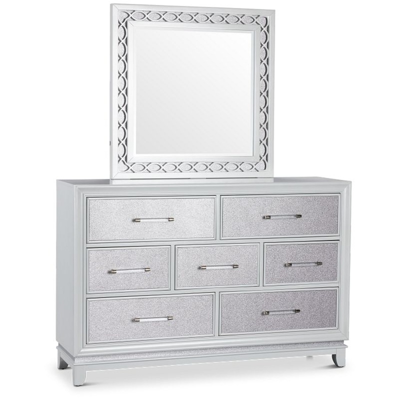 Hyanna King Panel Storage Bed with Mirrored Dresser and Nightstand