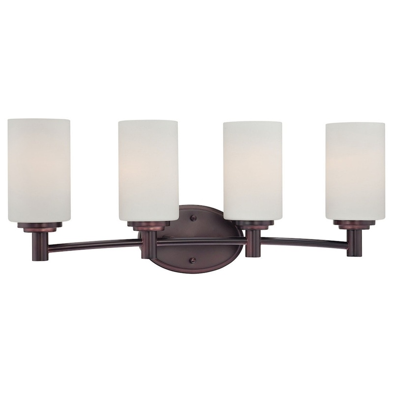 Four light bath bar in sienna bronze finish and etched swirl glass shades. Can be hung with glass facing up or down. Four100 watt medium base incandescent or led bulb required, not included. Bulb Type: -Number of Bulbs: 4 -Bulbs Included: No -UL Listed: Ye