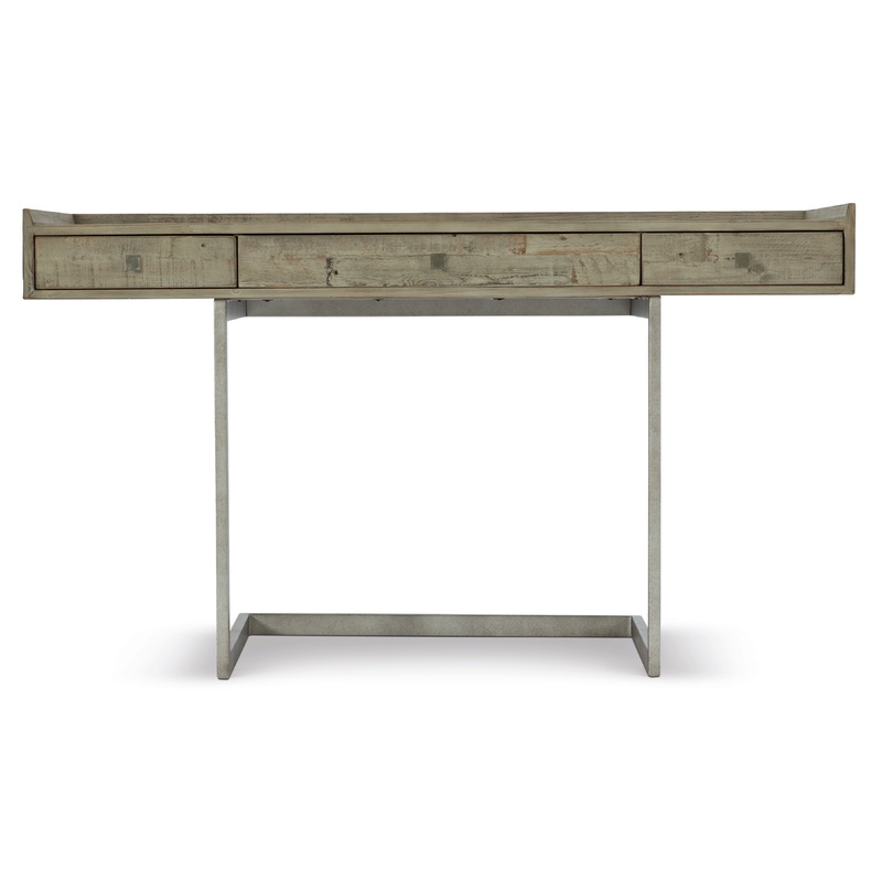 The Highland Park collection blends the best features of mid-century and farmhouse design, delivering an eclectic appeal with a laid-back vibe. Simple and stylish, the Polk desk features a rustic wooden top crafted from distressed pine. With a soft neutral palette, the finish highlights the grain and imperfections in the wood, while the cantilevered open steel base evokes a mid-century industrial feel.