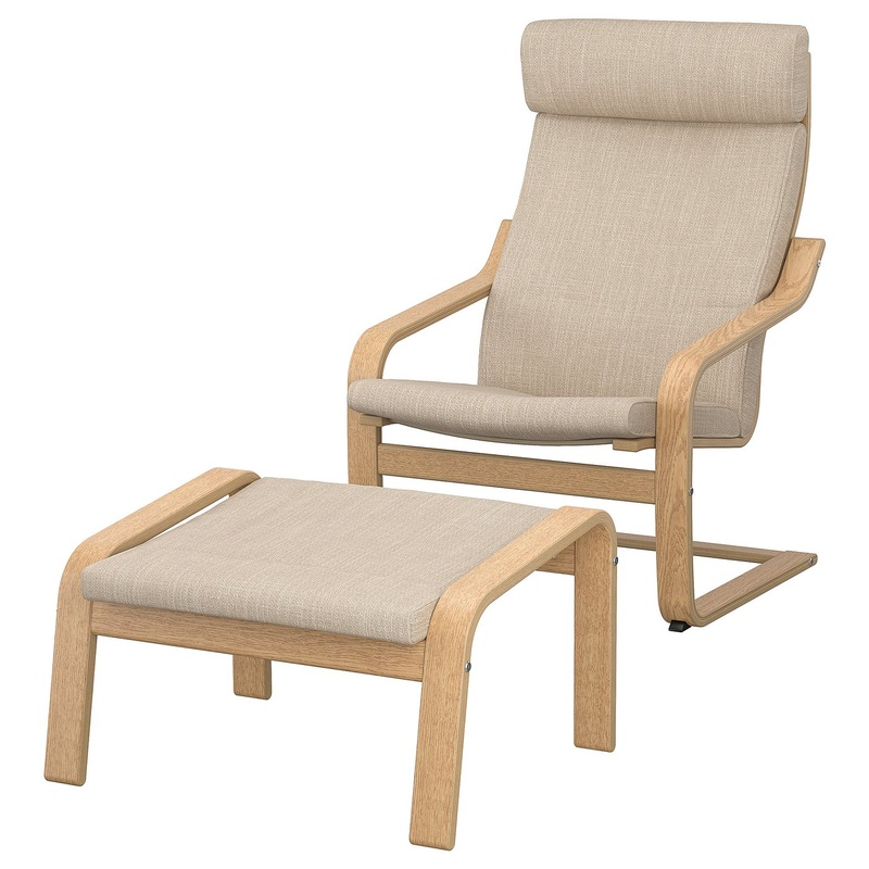PONG armchair and footstool, oak veneer/Hillared beige