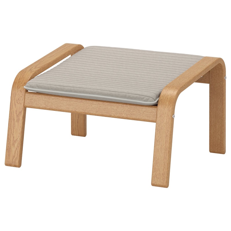 The frame is made of layer-glued bent oak which is a very strong and durable material.DesignerIKEA of Sweden/Noboru NakamuraMaterialFootstool frameLayer-glued wood veneer, Oak veneer, Tinted clear acrylic lacquerFootstool cushionWadding:100% polyester (min