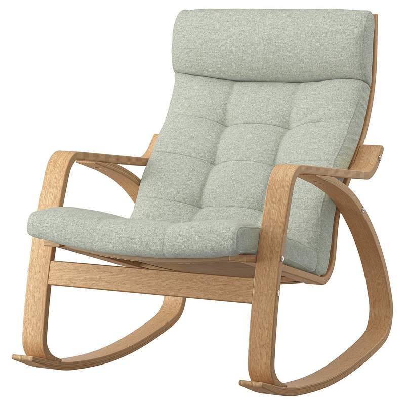 Rocking-chair frameFrame:Layer-glued wood veneer, Oak veneer, Stain, Clear acrylic lacquerSupporting fabric:100% polypropyleneArmchair cushionWadding:100% polyester (min. 80% recycled)Comfort filling:Polyurethane foam 35 kg/cu.m., Polyurethane foam 25 kg/cu.m.Fabric:74.5% polyester (min. 90% recycled), 20% modacrylic, 5.5% cottonBack fabric:100 % polyester (100% recycled)
