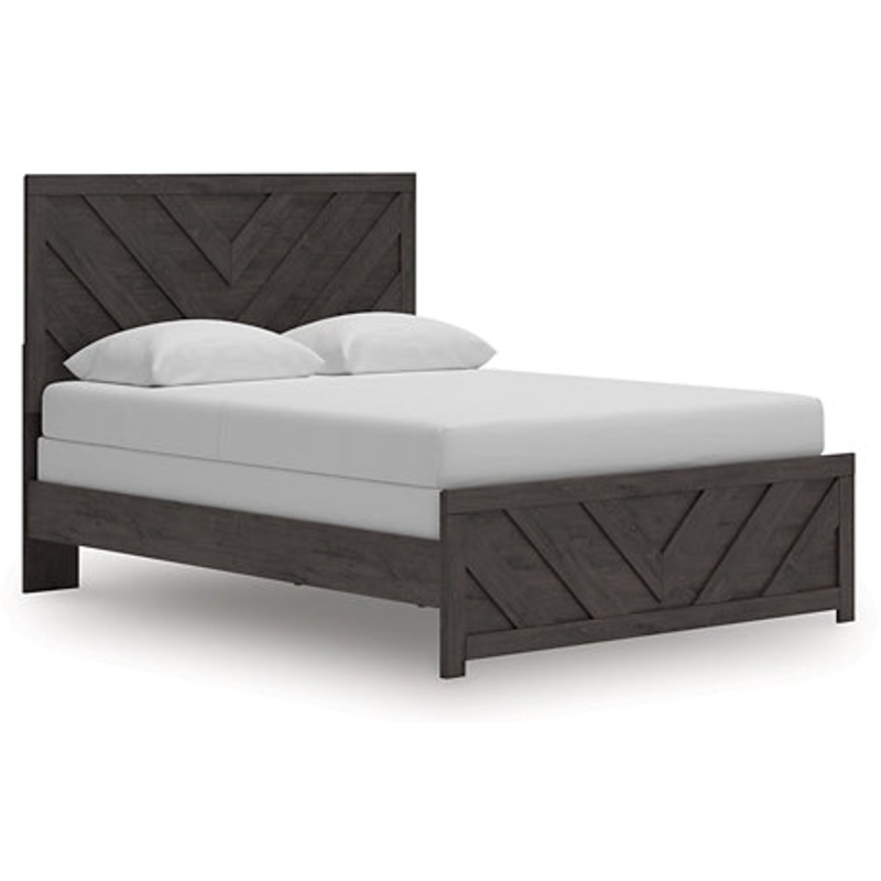 Designed with everyday style in mind, this queen panel bed is a simply chic approach to modern living. A dark charcoal finish blends black and brown undertones, creating a versatile look that effortlessly pairs with your existing pieces. And for an extra dash of trend-right style, the headboard is dressed in a playful chevron pattern.
