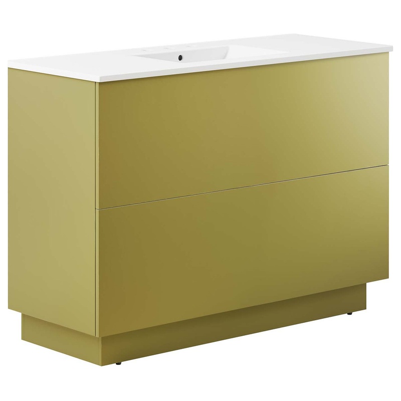 Experience a harmonious blend of luxury and practicality with the Quantum 48" Bathroom Vanity. This modern bathroom vanity features a sleek ceramic single sink basin with 8" centerset holes and integrated countertop, awaiting your personalized fixture choi