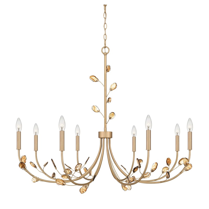 Heiress offers a fresh new take on a classic chandelier design. All leaves have a little variation due to their unique nature, creating a one-of-a-kind statement piece over any dining room or living room table. Features: Steel construction Sloped ceiling compatible 48″of hanging chain included (8) candelabra (E12) 60 watt bulbs required (not included) Capable of being dimmed Rated for damp locations Covered by Quoizel’s 1 year limited manufacturer warranty Dimensions: Height: 33″ Minimum Height: 36-3/4″ Maximum Height: 84-3/4″ Width: 40″ Depth: 40″ Product Weight: 8.58 lbs Chain Length: 48″ Electrical Specifications: Max Wattage: 480 watts Number of Bulbs: 8 Watts Per Bulb: 60 watts Bulb Base: Candelabra (E12) Bulb Shape: B10 Voltage: 120 volts Bulbs Included: No