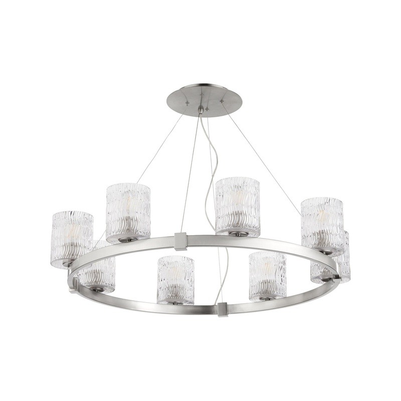 QUORUM 6184-8-65 Stadium 8-Light Chandelier, Satin Nickel . Series: Stadium. Finish: Satin Nickel . Dimension(in): 7.25(H) x 35(W). Bulb: (8)60W Medium Base(Not Included). UL Type: Damp.