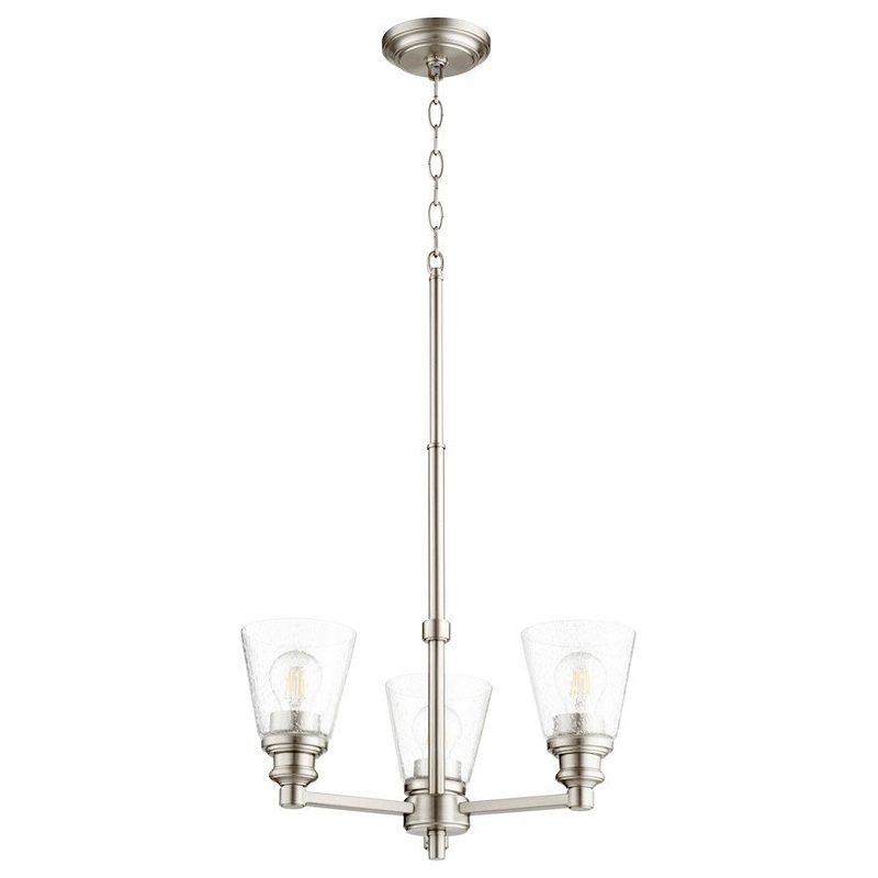 Quorum Dunbar 3 Light Chandelier, Satin Nickel/Clear Seeded – Transitional – Chandeliers – by Lighting New York