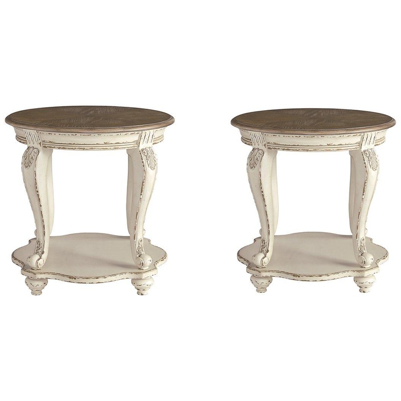 Elevating the art of traditional cottage styling, this 2-piece round end table set is sure to serve you beautifully for years to come. Antiqued two-tone aesthetic blends a chipped white with a distressed wood finished top for added charm. Classic cabriole