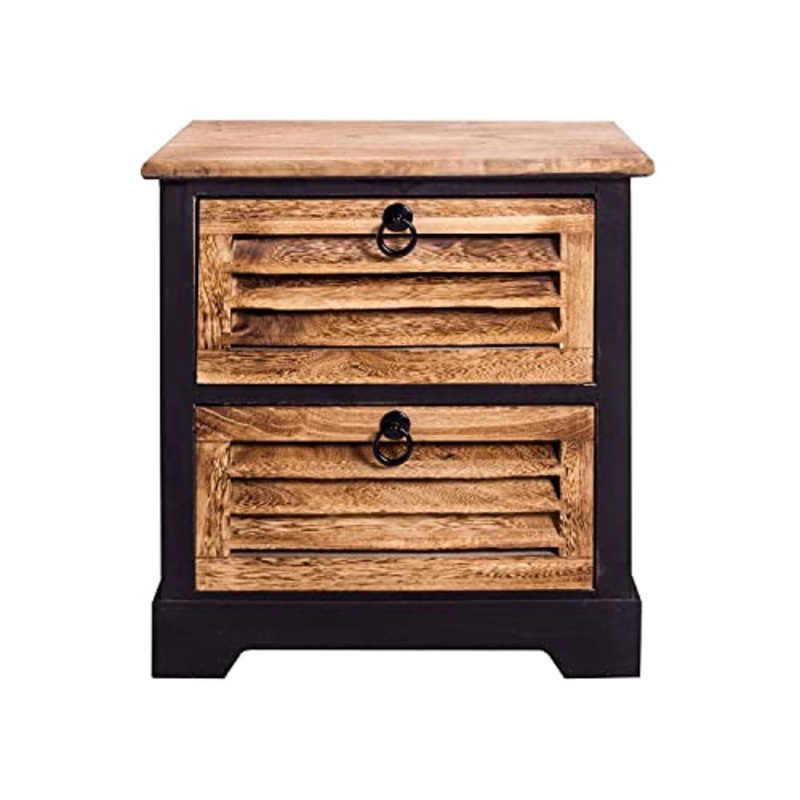 Rebecca Mobili Re4548 – Mobiletto Comodini con 2 cassetti, Legno, Urban Retr, Nero/Marrone, 45 x 42 x 29 cm
