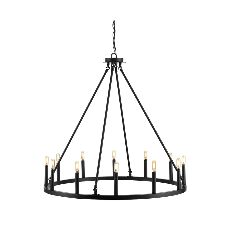 Ring Iron Rustic Farmhouse LED Chandelier, Width: 36″ – Industrial – Chandeliers – by JONATHAN Y