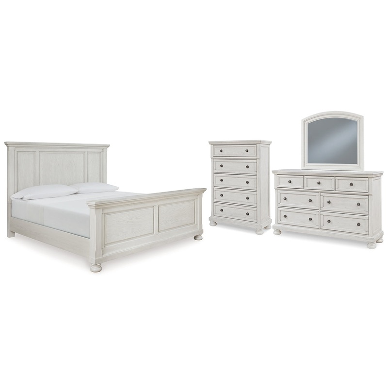 Robbinsdale California King Panel Bed with Mirrored Dresser and Chest