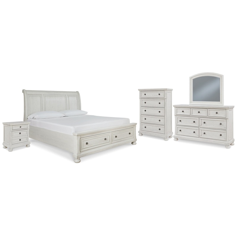 Robbinsdale King Sleigh Bed with Storage with Mirrored Dresser, Chest and Nightstand