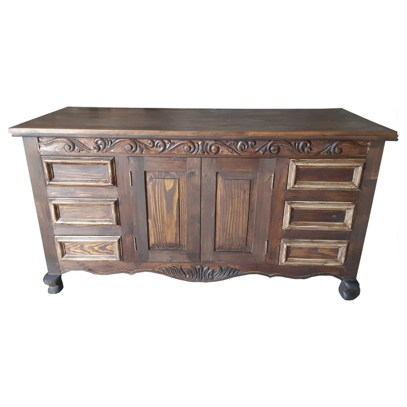 This Antique style and hand-stained finish set the foundation for this beautiful bathroom vanity. Adorned with hand-carved details, complementary door pulls. The Robert Alexander Vanity is sealed to protect from water damage. It has two doors that open to