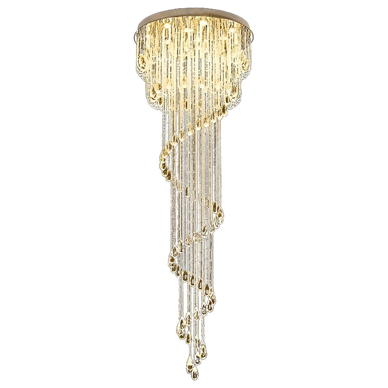Elevate your space with our stunning Roquebrune-Cap-Martin Double Spiral Crystal Stairwell Chandelier, a modern chandelier that exudes luxury and sophistication. This fancy lustre features cascading raindrops of crystal, creating a dazzling display of ligh