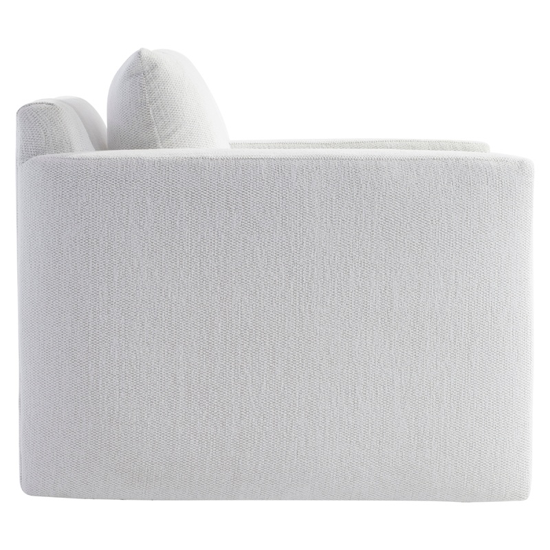 The Rory swivel chair showcases modern comfort in a pared-down style. Lightly padded and angled arm panels act as a stylish connector to the back and arms. A deep cushion and knife-edge back pillow offer a relaxing seat, while a smooth swivel base gives a 360-degree turn.