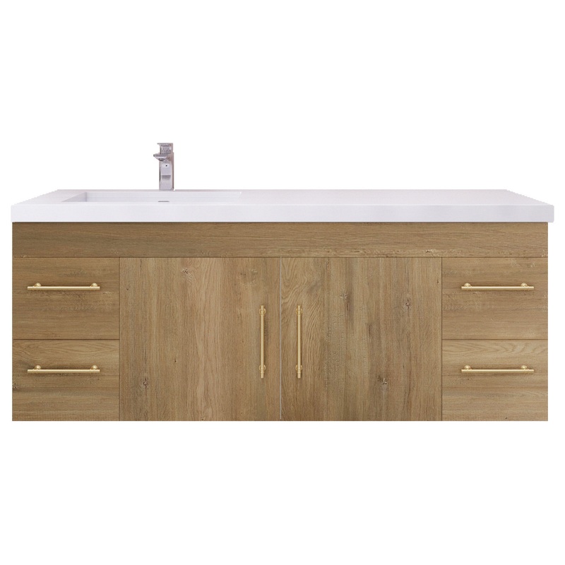 -4 drawers and 2 doors -Zink alloy handles -MDF cabinet -Reinforced acrylic sink top -Fully assembled for easy installation -Scratch, stain, and bacteria resistant surface -Integrated European soft-closing hardware -Multi stage finish to ensure durability