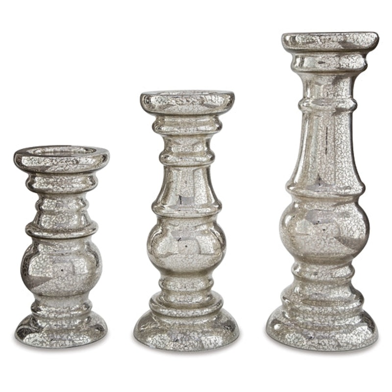 The turned silhouettes of this 3-piece candle holder set create gorgeous negative anywhere in your home. Silvertone finished mercury glass elevates the look with a hint of shine. With candles lit, an enticing aroma fills the air to complement your contempo