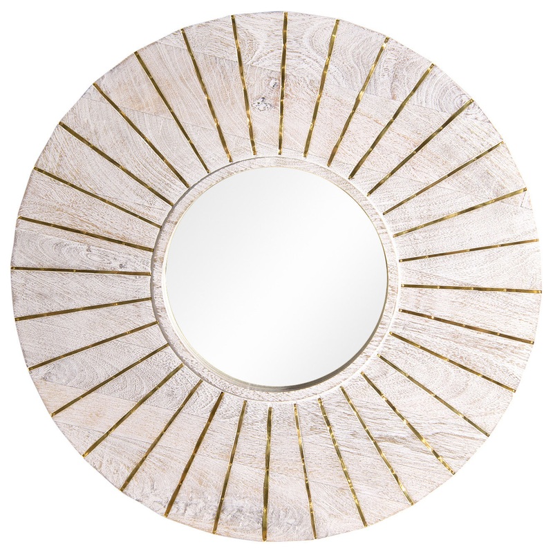 Round Whitewashed Wood Mirror with Gold Finish Inlay – Farmhouse – Wall Mirrors – by Best Home Fashion