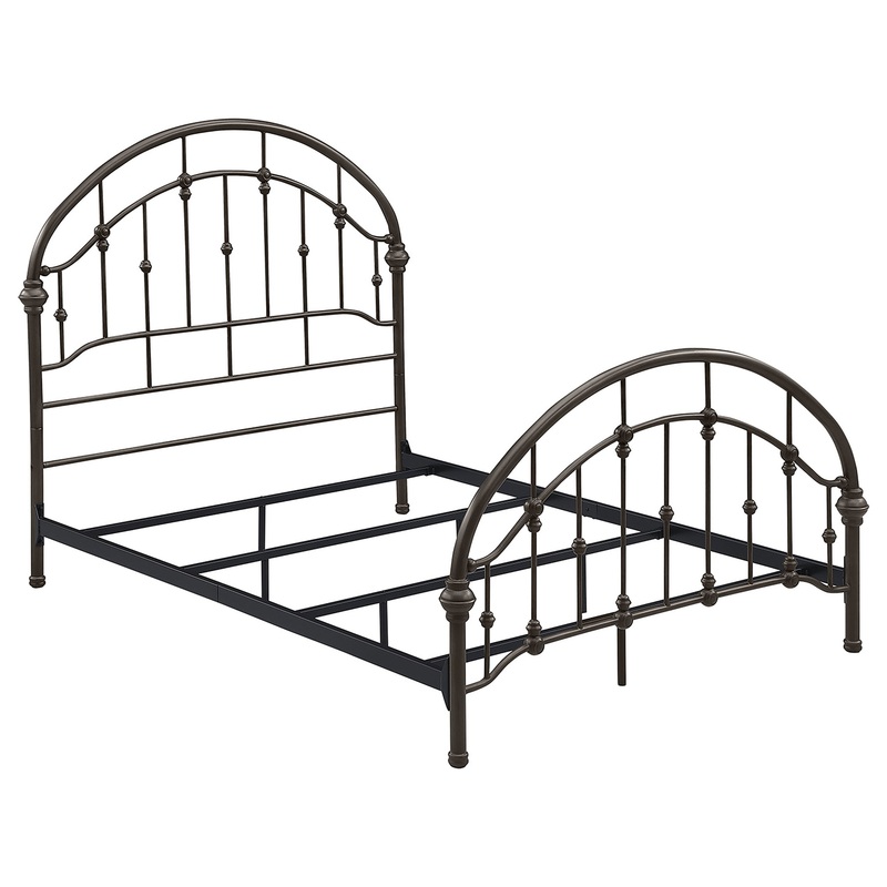 Add timeless appeal to your bedroom with this vintage-inspired metal bed frame, finished in a rich dark bronze for added sophistication. Featuring arched headboard and footboard designs with intricate detailing, this frame is crafted from heavy gauge metal
