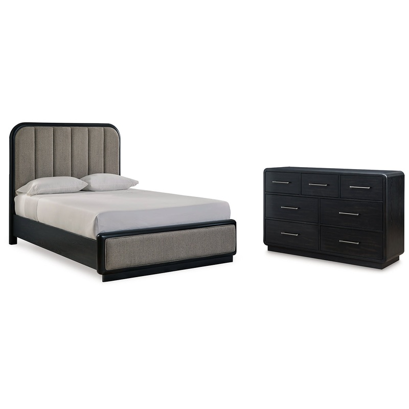 Rowanbeck Queen Upholstered Panel Bed with Dresser