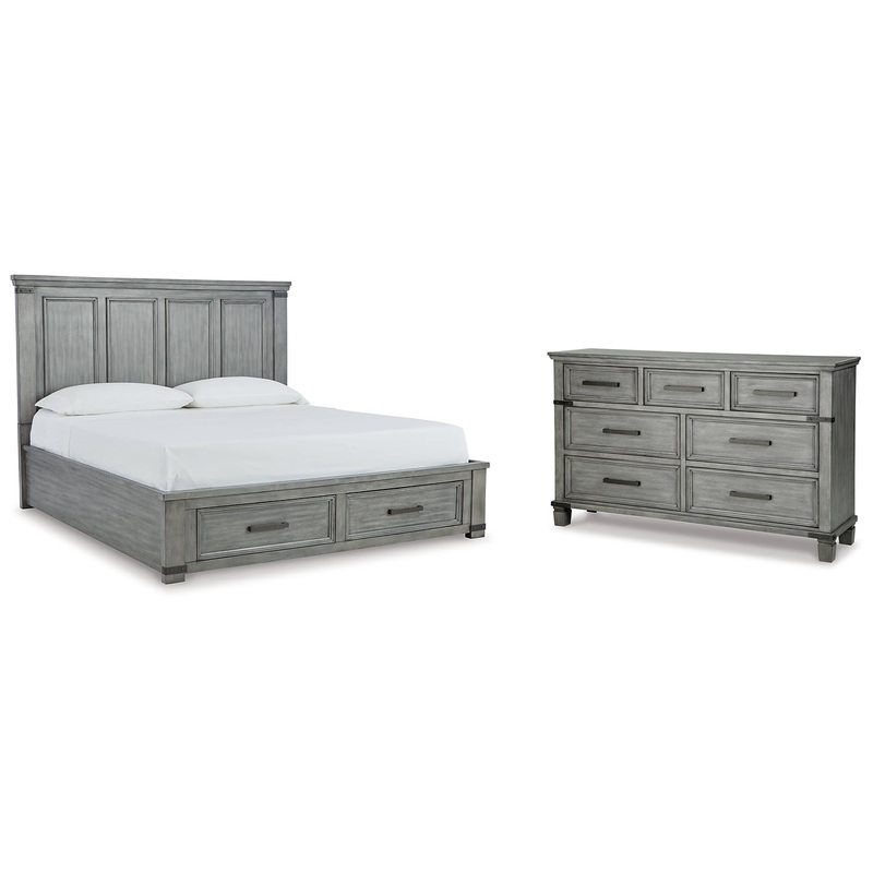 What's old is what's new with this bedroom package. Serving up a fresh look in urban farmhouse style, this set features a light weathered gray finish with dark aged bronze-tone bar pulls and metal straps for a casually cool sensibility. Profiled frames and