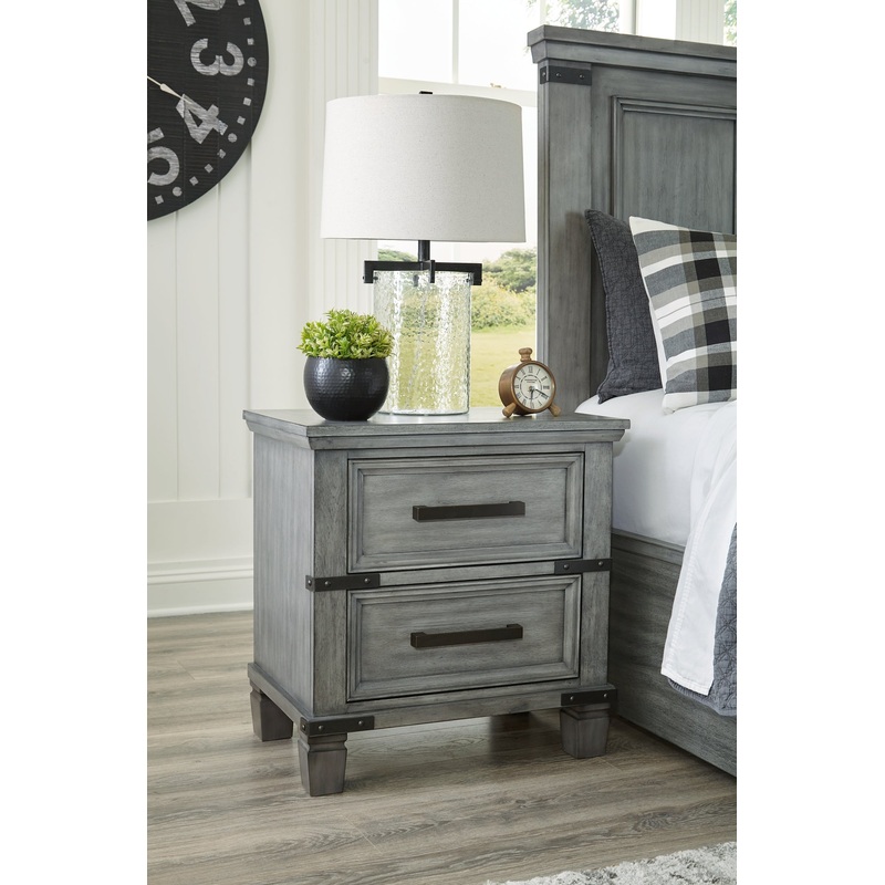 What's old is what's new with this nightstand. Serving up a fresh look in urban farmhouse style, this eclectic piece features a light weathered gray finish with dark aged bronze-tone bar pulls and metal straps for a casually cool sensibility. Profiled draw
