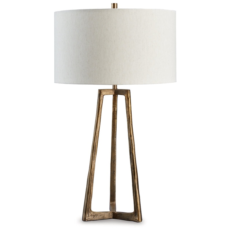 With its structural metal base and antiqued brass-tone finish, this table lamp takes a decidedly different stance on style. Whether youre a fan of vintage chic or industrial hip, its an illuminating choice.
