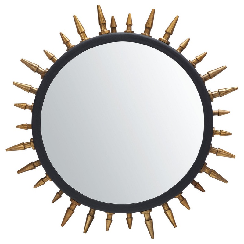 A steampunk take on classic Art Deco sunburst designs, this stunning Ceinth Small Mirror is bold, dramatic, and full of personality. Ceinth transforms 2000's-era fashion into glamorous modern decor with its sleek black frame and halo of golden spikes, maki