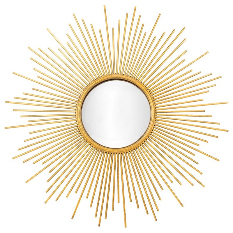 As prominent as the midday sun, the Vila Mirror casts is gold hues and glistening reflections throughout room decor. Finished in gold foil with a radiant spray framing a polished mirror, Vila is a classy accent accessory for traditional or classy contemporary decor.