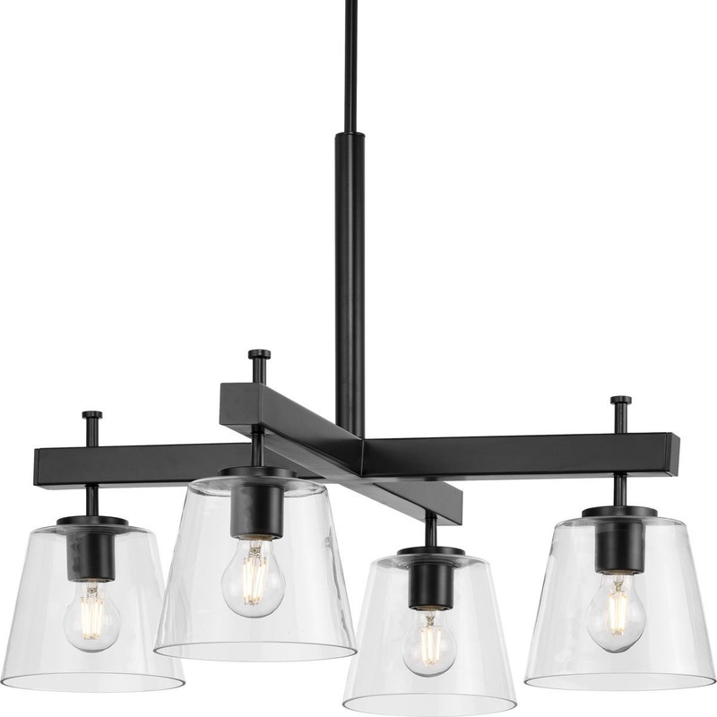 Saffert Collection Four-Light Matte Black Clear Glass Chandelier Light, 29.38 in x 29.38 in x 22.5 in – Transitional – Chandeliers – by Progress Lighting
