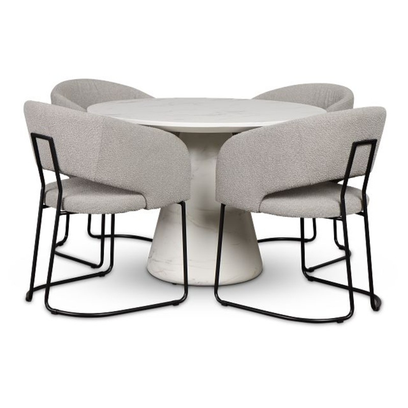 Capri Stainless Steel Ivory Round Table & 4 Upholstered Chairs