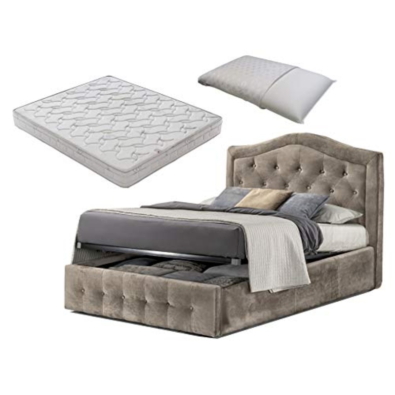 SARDAMATERASSI Letto piazza e mezza con box contenitore velluto beige designe + materasso piazza e mezza 120×190 memory foam+ guanciale memory saponetta sfoderabile
