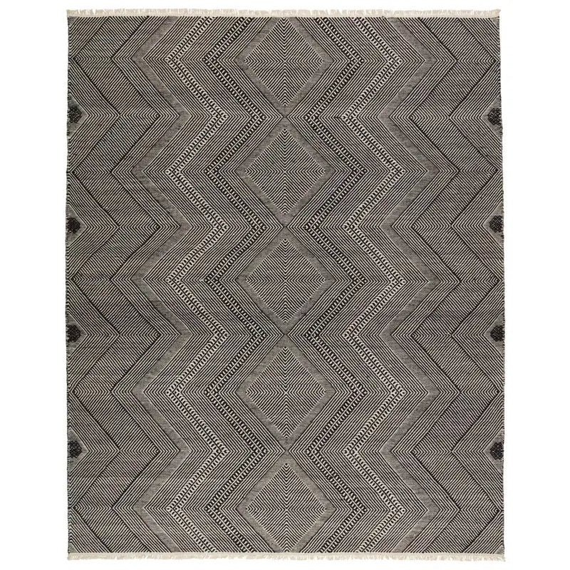 The Galexia rug from the handwoven Satori collection brings a globally inspired aesthetic to modern spaces. Featuring a detailed tribal and diamond pattern in a timeless black and cream palette, this Moroccan-style rug offers rich texture and visual interest. Accented with short fringe for added charm, the durable construction makes it a perfect fit for high-traffic areas like entryways, hallways, and living rooms.