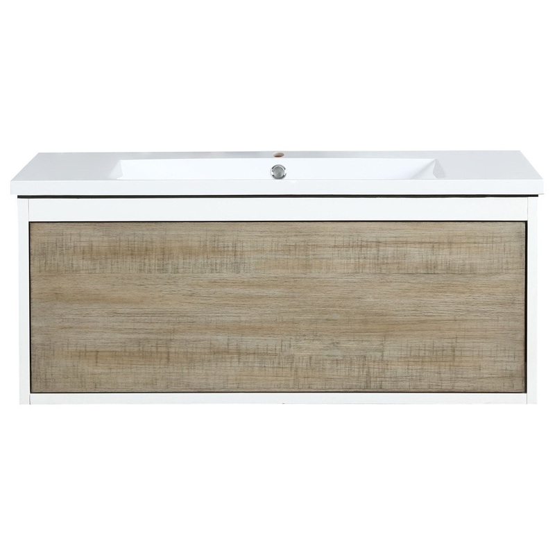 Scopi 36″ Rustic Acacia Bathroom Vanity and Acrylic Composite Top with Integrated SinkInfuse your bathroom with a calming sense of harmony. The Scopi collection blends bold, natural rustic acacia wood grain with stylish vibrant white accents.