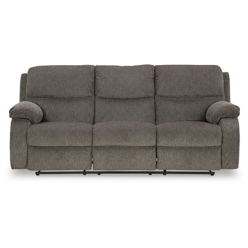 Craving a simple spot to relax and recharge? This reclining sofa encourages you to take a break from the everyday grind. Its contemporary bustle back and versatile hue bring stylishly soft comfort to a seating area. And when youre ready to recline, the simple pull tab motion has you kicking back in no time.