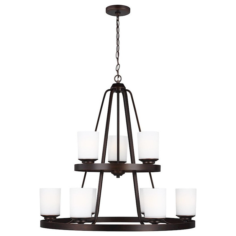 The Sea Gull Collection Kemal nine light multi tier chandelier in burnt sienna is the perfect way to achieve your desired fashion or functional needs in your home. -Part of the Kemal Collection -Finish: Burnt Sienna -Made of Steel -Glass: Etched / white in