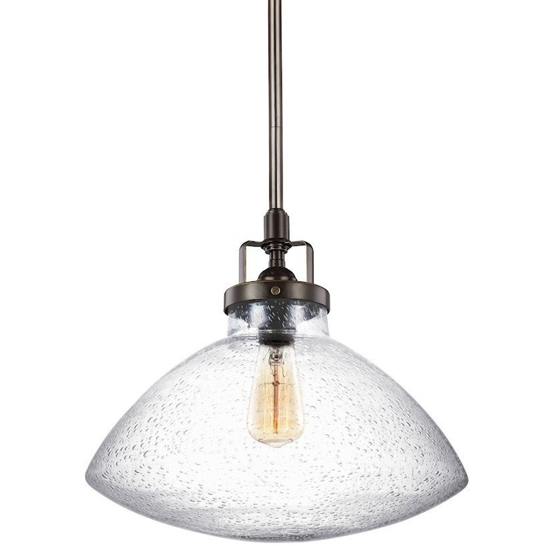 Sea Gull Lighting Belton 1 Light Pendant, Bronze/Clear Seeded – Industrial – Pendant Lighting – by LAMPS EXPO