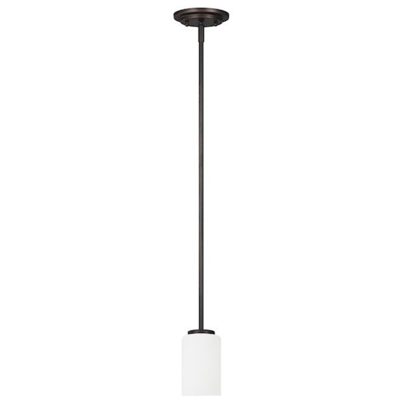The Sea Gull Collection Oslo one light mini pendant in burnt sienna supplies ample lighting for your daily needs, while adding a layer of today’s style to your home’s d”cor. The Oslo lighting collection by Sea Gull Collection is a sleek design, with smooth and clean lines. The Opal Etched glass adds to this collection’s contemporary and minimalist character. Offered in Chrome, Brushed Nickel, Burnt Sienna and textured Blacksmith finishes, the collection includes nine-, five-, and three-light chandeliers, pendants in four sizes, both flush and semi-flush ceiling fixtures, as well as one-, two-, three- and four-light wall/bath fixtures. Both incandescent lamping and ENERGY STAR-qualified LED lamping are available. All fixtures are California Title 24 compliant.
