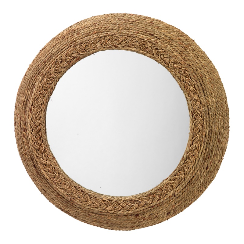 Add natural texture and an instant coastal flair to any room in your home. Hand-wrapped in natural seagrass, this mirror adds dimension and depth to any room. -Hand-woven of 100% Natural Seagrass -Non beveled glass mirror -Hangs vertical only -Natural Tone