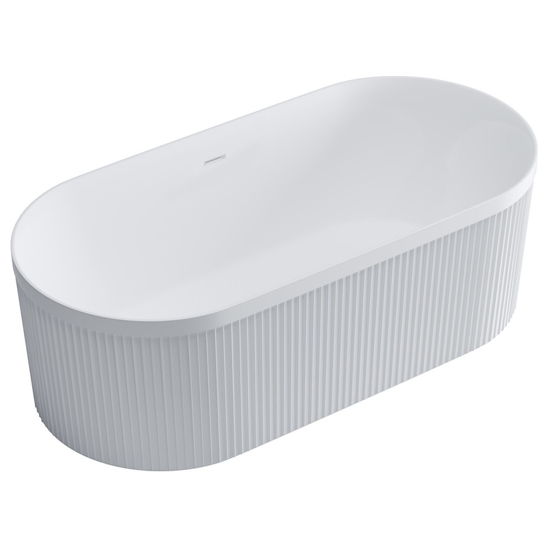 Pamper yourself in the epitome of bathing luxury with our 90-gallon capacity oval-shaped fluted acrylic soaking tub. Its graceful fluted design exudes timeless elegance while offering ample space for the ultimate relaxation. Crafted for durability and style, this tub transforms your bathroom into a spa-like sanctuary, inviting you to unwind in sheer opulence. Available in matte white and matte black. Drain not included.