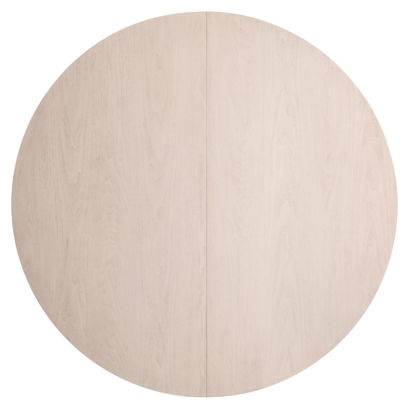 Modern organic style is showcased in the stunning Sereno dining table. The open base is crafted of cast resin with textured faux stone in the Sasso finish. It supports a round wood top in the Lutra finish that can expand to an oval shape with the addition of a leaf.