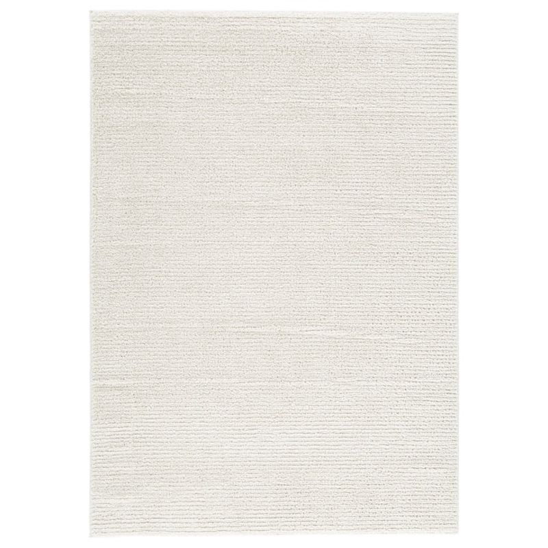 This rug offers a clean, modern touch to your home. Featuring a machine woven high-low stripe design in cream hues, it provides simple, plush comfort and a neutral design that fits most decors.Made of polyesterMachine woven cut and loop pile17mm pileBacked