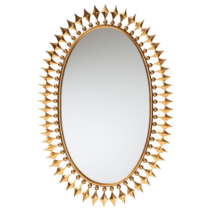 Enkindle a sense of robust style in your space with the bold opulence of the Shane accent wall mirror. Made in China, this glamorous piece consists of a solid metal frame fitted with a large central mirror. Diamond-head spokes border the oval-shaped mirror