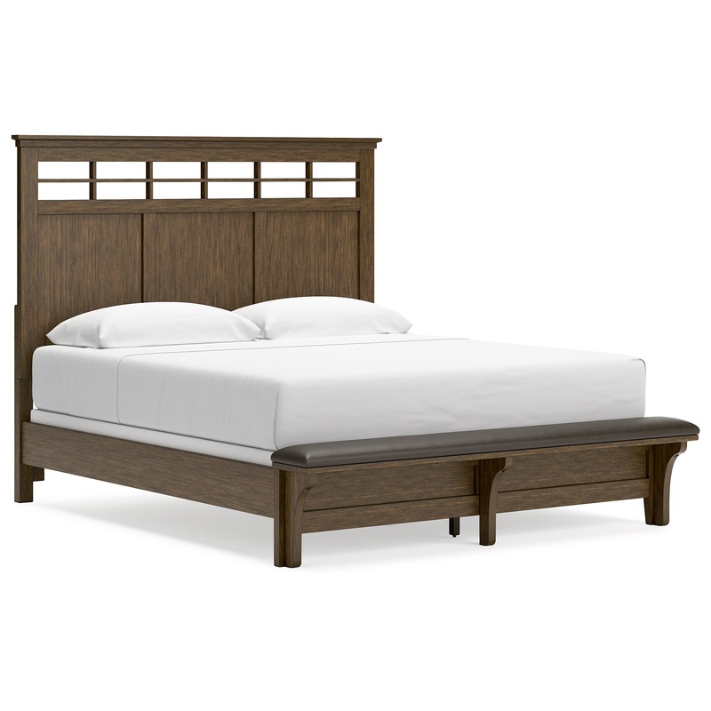 This California king panel bed is well-suited to everyday living with its expertly balanced approach to style and function. Take the stress out of decoratinga classic medium brown finish easily pairs with existing furniture pieces. Its timeless design stays in style as you update your space, while open detailing at the top of the headboard is a trendy touch. And its cushioned footboard bench provides seating for morning get-ready routines or late night chats. All that’s left for you to do is to effortlessly enjoy the day-to-day comforts of home.