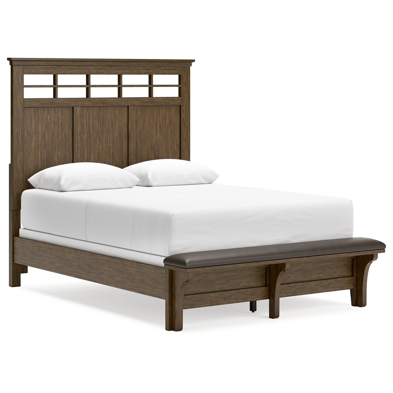 This queen panel bed is well-suited to everyday living with its expertly balanced approach to style and function. Take the stress out of decoratinga classic medium brown finish easily pairs with existing furniture pieces. Its timeless design stays in style as you update your space, while open detailing at the top of the headboard is a trendy touch. And its cushioned footboard bench provides seating for morning get-ready routines or late night chats. All that’s left for you to do is to effortlessly enjoy the day-to-day comforts of home.