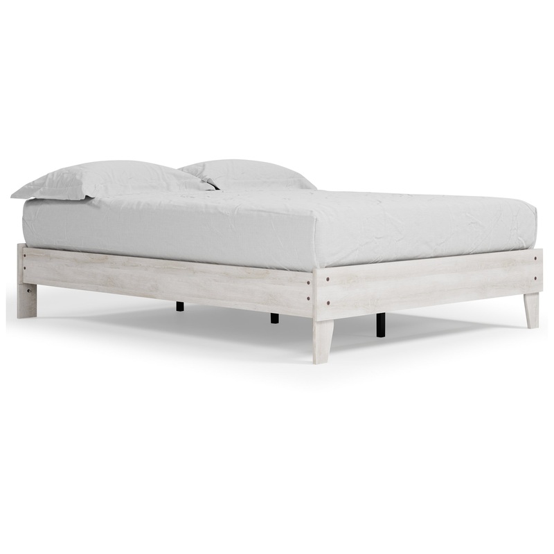 Give casual a new meaning with the chic look of this queen platform bed. A light gray finish over replicated oak grain keeps it laid-back and inviting, as does its minimalist aesthetic. Talk about a delightfully relaxed vibe in your inner sanctum.