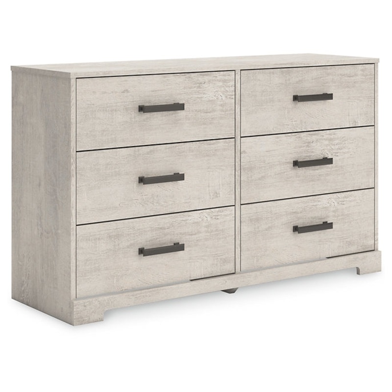 Give casual a new meaning with the chic look of this dresser. A light gray finish over replicated oak grain keeps it laid-back and inviting, while substantial pulls in a warm pewter tone add a modern farmhouse touch. Spacious drawers give you plenty of room to store your wardrobe. Talk about a delightfully relaxed vibe in your inner sanctum.