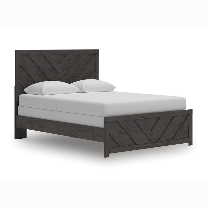 Designed with everyday style in mind, this queen panel bed is a simply chic approach to modern living. A dark charcoal finish blends black and brown undertones, creating a versatile look that effortlessly pairs with your existing pieces. And for an extra dash of trend-right style, the headboard is dressed in a playful chevron pattern.